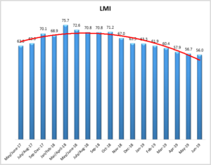 LMI® at 56.0% Growth is INCREASING AT AN INCREASING RATE for: Inventory Levels and Warehousing Utilization. Growth is INCREASING AT
