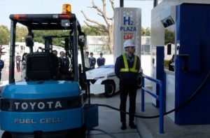 Toyota Industries Corp has installed the H2Plaza, which charges fuel-cell (FC) forklifts with hydrogen produced by using solar electricity, at