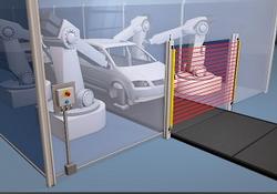When safety light curtains are guarding a danger zone where material must be moved automatically into or out of the zone,