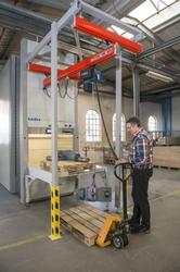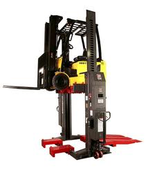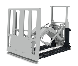 Versatile material positioner from Verti-Lift includes integral lift and tilt, turn and conveying functionality