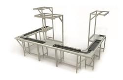 Multi-Conveyor recently built a dual lane conveyor system with a center rail for a hand pack line. These mild