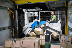 Innovative solution for postal operators and CEP companies: semi-automatic discharging device for different package sizes ensures higher throughput and a