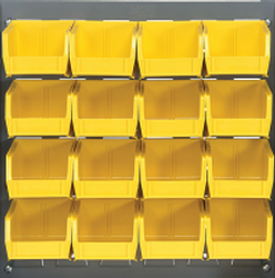 Quantum Storage Systems now has (12) Louvered Panel Systems that come complete with plastic bins as a package. No longer