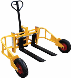 Vestil announces a new all terrain pallet truck with large diameter wheels, ideal for use on gravel, dirt, or other
