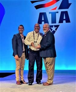 America’s Road Team Captain and YRC Freight professional truck driver, Steve Fields, was presented with the Mike Russell Trucking Image