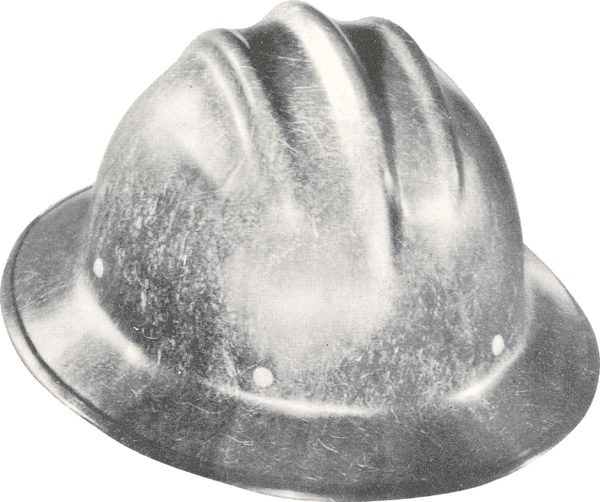 Bullard’s distinctive three-rib, heat resistant fiberglass hard hat was developed in the 1940s. In the 1950s and 1960s, thermoplastics replaced fiberglass. In 1982, the standard hard hat changed again with the incorporation of a non-slip ratchet suspension with a knob in the back for simple sizing.