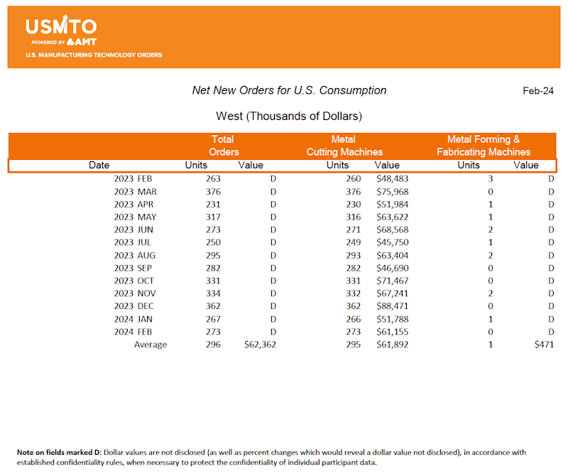 Orders of manufacturing technology, measured by the U.S. Manufacturing Technology Orders Report published by AMT – The Association For Manufacturing Technology, totaled $343.3 million in February 2024.