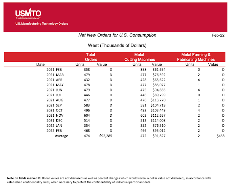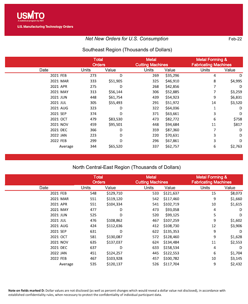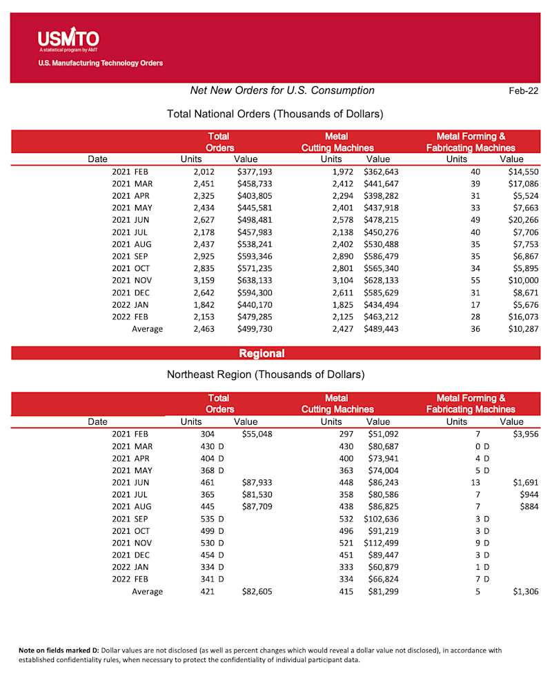 “The industry seems to be carrying the momentum of 2021 into the beginning of 2022, recording the best start to the year in over two decades,” said Douglas K. Woods, president of AMT. “As we have learned throughout the last two years and, especially the last few months, conditions can change quickly. We saw this in 2021 when order values during the first few months of the year performed only moderately well, but by the end of 2021, it was the best year on record. This can cut both ways so we may need to temper the early 2022 excitement as conditions on the ground change.”