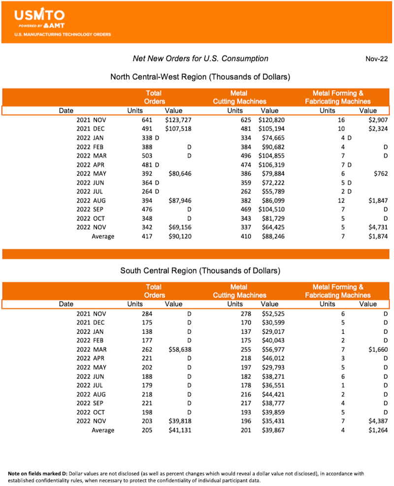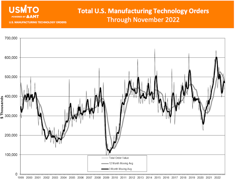 “After recording the highest level of orders in 2021, it was only a matter of time before 2022 fell slightly behind,” said Douglas K. Woods, president of AMT. “The fact that orders stayed above 2021 levels for 10 months really speaks to the continued strength in the demand for manufacturing technology. This demand has been spurred by the extraordinary economic challenges of the last few years, which has prompted expanded domestic manufacturing as well as foreign direct investment.”
