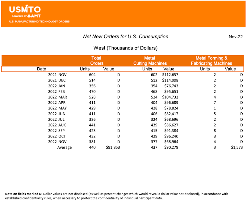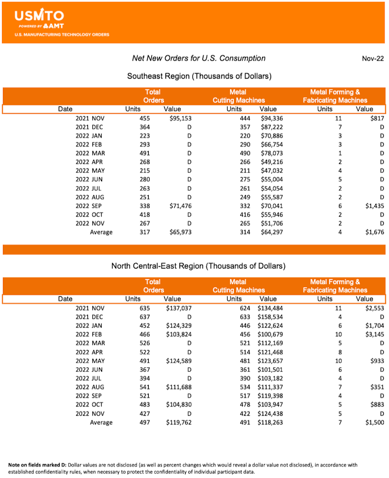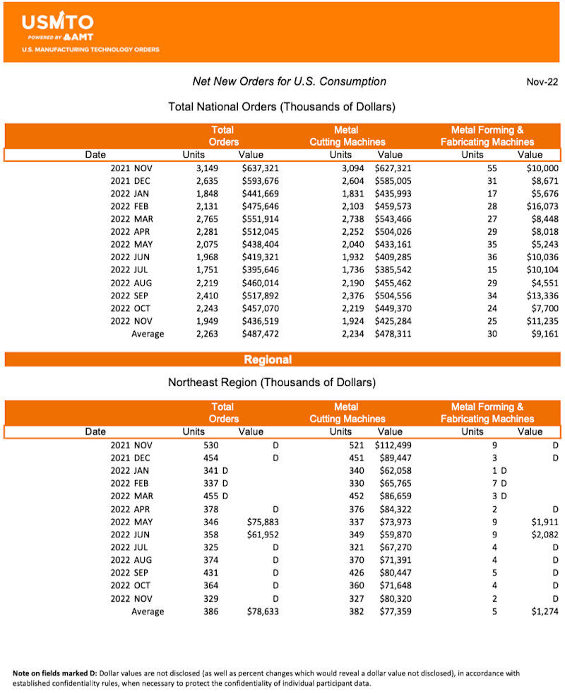 New orders of manufacturing technology totaled $436.5 million in November 2022, according to the latest U.S. Manufacturing Technology Orders Report published by AMT – The Association For Manufacturing Technology