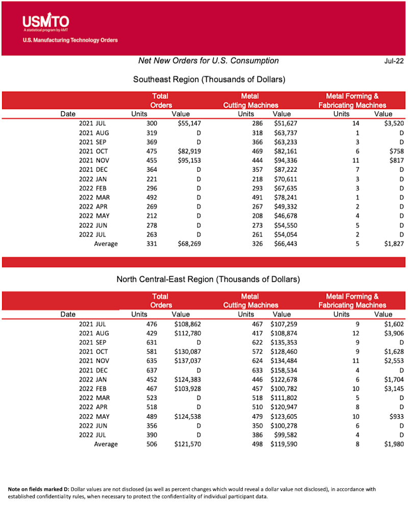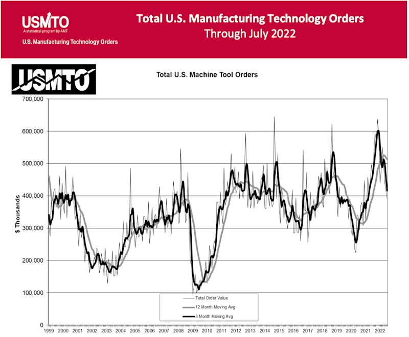 “While July 2022 is down compared to July 2021, orders in both years were quite above what would be seen in a typical year,” said Douglas K. Woods, president of AMT. “Last year was the best on record and was particularly fueled by strong orders in the last third of the year, so it will be hard to match. However, given that orders are already nearly 9% over 2021, and with the typical boost to orders from IMTS, it appears possible to come close.”