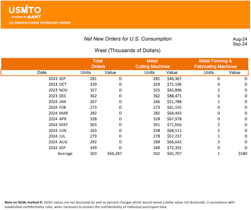 Throughout most of 2024, manufacturers hesitated to invest in manufacturing technology due to concerns over heightened interest rates and November’s U.S. presidential election. In September, the Federal Reserve cut rates after a year of its “higher for longer” monetary strategy to reduce inflation. We may not see the effects of this development until the October 2024 data is released, and the effects of a further rate cut and the effects of the presidential election may not be seen until the November data is released.