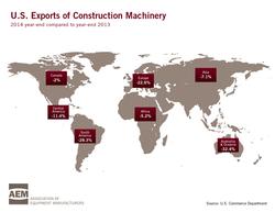Exports of U.S.-made construction equipment ended 2014 with a 13.2-percent drop compared to 2013, with a total $17.26 billion shipped to global markets.