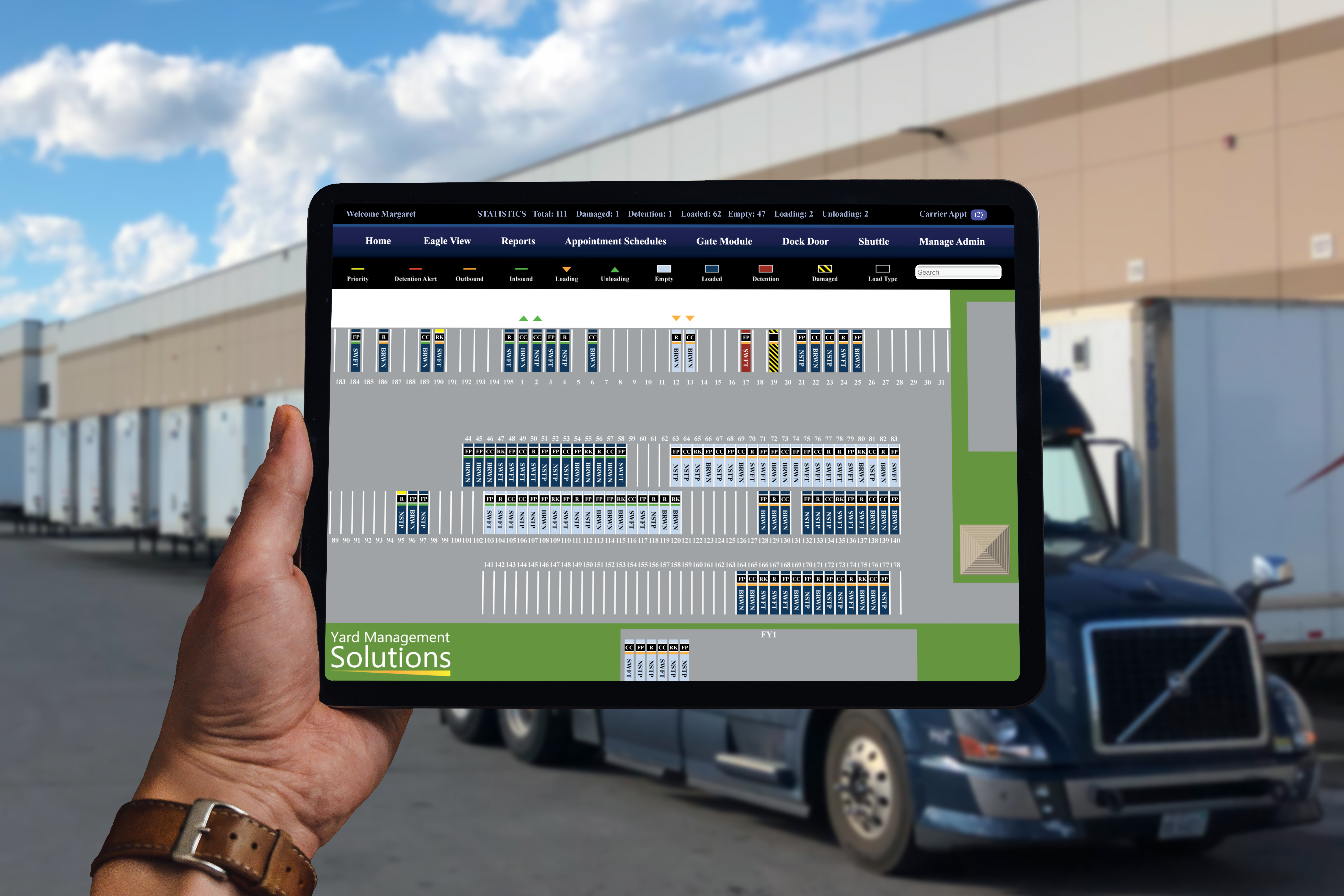 - Yard Management Solutions is a software company that provides a software platform for, you guessed it, yard management. The founders wanted to start a logistics company and when they were looking for a yard management software to use they could not find one so they built one which the company is now based around. Having a yard management platform is vital when it comes to an operation with high truck volume. It can help you to prioritize the proper loads and also make sure there is nothing lost in the shuffle.