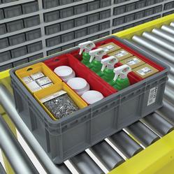 Akro-Mils announces the next-generation tote for maximizing space in automated storage and retrieval systems (AS/RS) — the Multi-Load Tote. The Multi-Load Tote expands and improves upon traditional tote design by providing maximum flexibility as users’ storage needs change — it can be used as a stand-alone tote, or with optional, removable bin cups and dividers to create individual compartments within the tote. The sidewall clip design (patent pending) allows the cups and dividers to attach quickly and securely to the tote. Individual cups can be removed from the tote for easy handling at a picking or packing station. The tote features a reinforced flat bottom for smooth conveyor travel, and ribbed sidewalls and a reinforced rim for maximum durability and long service life. This stackable container also features large label areas. Akro-Mils’ versatile and customizable Multi-Load Tote is ideal for maximizing space in mini-load automated storage and retrieval systems, conveyor systems, order picking and packing, and general storage and logistics applications.