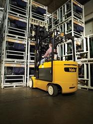 Yale Materials Handling Corporation announced the launch of an upgraded electric rider lift truck series with a capacity of 8,000-12,000 lbs. Designed to make a leading electric lift truck more advanced, the new Yale® ERC080-120VH lift truck series is built to meet and exceed application requirements for warehousing, retail and industrial environments. “The time for converting from internal combustion engine (ICE) trucks to electric lift trucks is now,” said Bill Pfleger, president of Yale Distribution. “Our ERC080-120VH electric riders are just as durable as ICE trucks, are more cost-effective, eliminate emissions and are fitted with leading innovative technologies designed specifically for materials handling.” To ensure that customers’ needs are met, all of Yale’s new ERC080-120VH trucks have undergone rigorous durability and performance testing. Not only are they comparable in power and durability to ICE powered trucks, but can save money by eliminating fuel costs and dramatically reducing emissions. In addition, the new truck series features enhanced technologies such as a stronger and more durable powertrain, a drive axle with increased shock absorption for heavy loads, and a mast that is reinforced with ductile iron-casted cross members which resist mast rocking and lateral movement. The ERC080-120HV series presents excellent stopping power with low brake pedal effort by providing wet disc brakes. These brakes are designed to lower cost of operation by requiring no adjustments or servicing other than a periodic lubrication change at 4,000-hour intervals. The series also includes a Power-Assisted Braking System, which further increases brake and drive train life by automatically utilizing traction motor braking in proportion to operator brake pedal pressure. With reduced demand on the service brakes, the assisted braking feature lessens operator braking effort by up to 40 percent. The AC traction motors and efficient hydraulic components used in the ERC080-120VH maximize uptime and increase throughput. Considered the “operator’s truck,” Yale® lift trucks are fitted with advanced ergonomic technologies that increase productivity by helping to reduce operator fatigue. The truck also features textured grab handles, a tilt steering column with optional tilt-memory and telescopic adjustment for improved operator comfort and productivity.