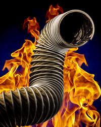 Flex-Lok® 570 high temperature exhaust hose is constructed with a single-ply Para-Aramid fabric that is locked around a coated steel wire by a metal strip and is mechanically crimped in a continuous process.  Ideal for fume venting at -40°F to 570°F temperatures, this lightweight flexible hose is flame-retardant, puncture-resistant, and provides high tensile strength.