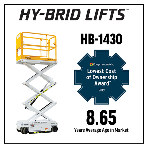 “This award highlights our commitment to providing customers with the highest quality, longest-lasting lifts,” said Terry Dolan, Hy-Brid Lifts president and CEO. “We are honored to be this year’s recipient in the electric scissor lifts category. It underscores that the HB-1430 — along with all of our lifts — is a top choice for customers because of its durability and value.”