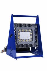 This explosion proof LED light fixture is comprised of a 16 inch wide by 14 inch tall rectangle light head mounted within a pedestal base stand with a convenient carrying handle built into the top of the stand. The LED lamp produces 12,000 lumens with a color temperature of 6000K and a color rendering index of 70, which produces colors and details much more accurately than high pressure sodium or mercury vapor lamps. The lamp can be easily adjusted up or down 90° and locked into position by simply loosening the two hand screws located on either side of the light head and tightening them once the desired angle is found.