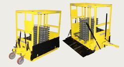 Kinetic Technologies, Inc. has introduced a new “gantry” style mother cart that moves three daughter basket carts totaling up to 3,000 lbs. The daughter carts are rolled onto a gas spring controlled drop ramp from either side of the mother. Mother carts feature reverse coupled caster steering for tighter tracking and less drift in corners, less than 1” ground clearance and built-in guide rail bars for daughter carts. Three mother carts per train may be used depending upon tug capacity and aisle clearances. Standard features include; clevis and pin hitch, spring loaded self-stowing tow bar and low noise 6” and 8” debris shedding wheels.