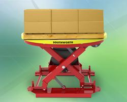 The new PalletPal 360 Air level loader from Southworth Products allows operators to build or break down pallet loads with a minimum of bending, reaching, stretching, or walking around.  The unit automatically adjusts the height of pallets as boxes are added or removed.  Height adjustment is achieved by a heavy-duty reinforced rubber air bag that maintains the top layer of stacked containers at a convenient height.