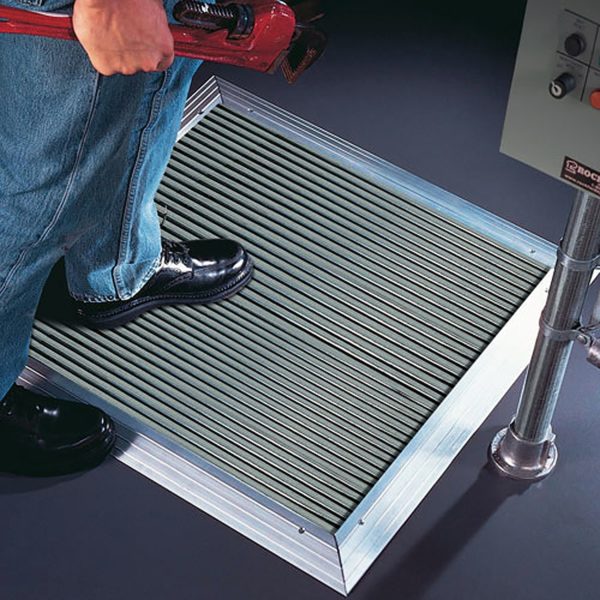 Rockford Systems pressure-sensitive mats are resistant to wear, oils, grease, acids and most common chemicals. They are the industry standard for reliability and durability in the harshest industrial environments including robotic welding, water jets, tube benders, conveyors, CNCs and other assembly machines. Each mat top surface has a rib pattern running parallel with the mat length to prevent slipping, yet is easy to clean. Their single-piece molded construction prevents de-laminating, while tapered or straight edges allow configuration flexibility.
