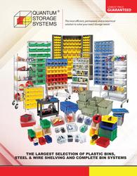 The catalog features numerous storage innovations including the NEW wire post basket shelving system; unique Rackbin™ series of extra large, 42” long, heavy-duty poly bins, designed specifically for pallet rack; a new line of giant-size, clear-view stackable containers utilizing the company’s unique, crystal-clear visibility technology for easy parts identification; Quantum’s Q-peg wall mounted system; and its “Par Wall” free standing storage system in single-sided and double-sided models for hanging wire baskets or plastic bins.