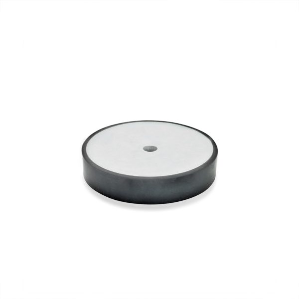 The steel disk plate is zinc plated, with a blue passivated finish, while the black rubber underlay is vulcanized, and is temperature resistant up to 248 °F (120 °C).