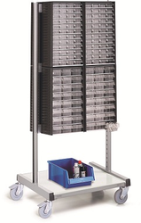 Work is not always confined to a single workstation and parts must be moved around accordingly. Each task is different and requires dedicated tools. Sovella small parts trolleys are ideal for this situation and significantly increase productivity up to 30%. Sovella Cabinet trolleys offer storage for a range of small parts, and are now available in sets. Cabinet trolley sets include trolley frame, aluminium rails, casters, bottom shelf and 8 small parts cabinets. Clear cabinet drawers assist in easy identification of parts. Labels are included, and drawer dividers are available. A corrugated drawer allows for easy picking of small parts. Sovella cabinet trolleys are double sided and can be easily reconfigured as needed. Sovella trolleys and carts offer the complete mobile workspace solution!
