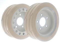 TVH in the Americas (TVH) is pleased to announce that we now carry the new style of tires to fit Skyjack equipment! These new tires allow you to save valuable time by replacing the complete wheel assembly. Since these wheel assemblies are made of mold on solid tires, there is no risk of tires spinning in place on the rim. And the new tread pattern helps with traction on wet surfaces! We offer two types of tires: the front tires without a brake ring, and the rear tires with a brake ring to lock the tires in place while your equipment is elevated. Features include non-marking compound, mold on solid tire, traction tread and fits Skyjack models SJIII-3015, SJIII-3215 & SJIII-3219.