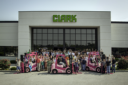 CLARK Material Handling Company will offer its dealer network the ability to purchase a special pink “Raising Hope” four-wheel pneumatic forklift to support this year’s Susan G. Komen Race for the Cure event held in Lexington, KY October 5, 2013. Donations from the CLARK dealers will be presented at the Race for the Cure along with a matching contribution from CLARK. High contributing dealers will also be recognized by CLARK as a 2013 “Raising Hope Champion”. Raising hope champions will be acknowledged on the race for the cure team shirt, national press releases and will receive a 2013 Raising Hope Champion Plaque for display at their dealership. CLARK’s President & CEO Dennis Lawrence commented, “CLARK, its employees and its dealers take great pride in being good community stewards. The Komen Race for the Cure event is something we look forward to each and every year as a way to support a cause so dear to so many.” This will mark the 7th consecutive year CLARK has participated in the Komen Lexington Race for the Cure event. CLARK and its dealer network have successfully raised over $200,000 for the Susan G. Komen Foundation.