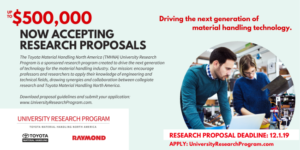 The submission form for Toyota Material Handling North America’s (TMHNA) University Research Program is now open. The sponsored research program, created to drive and